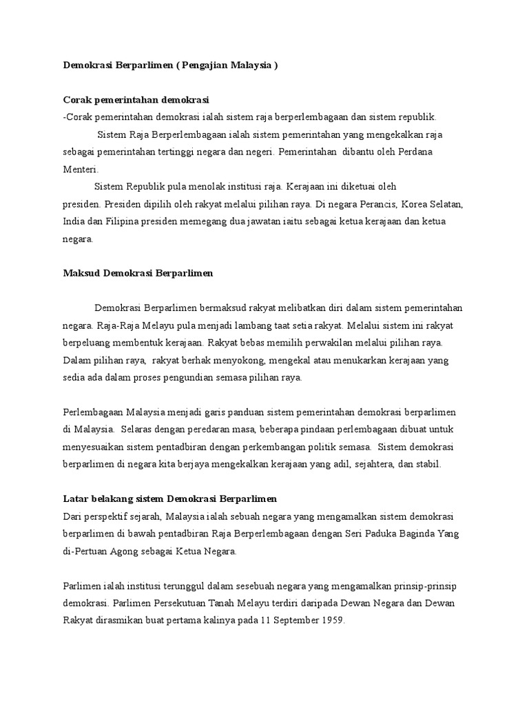 Sistem Demokrasi Berparlimen Demokrasi Berparlimen Pengajian Malaysia