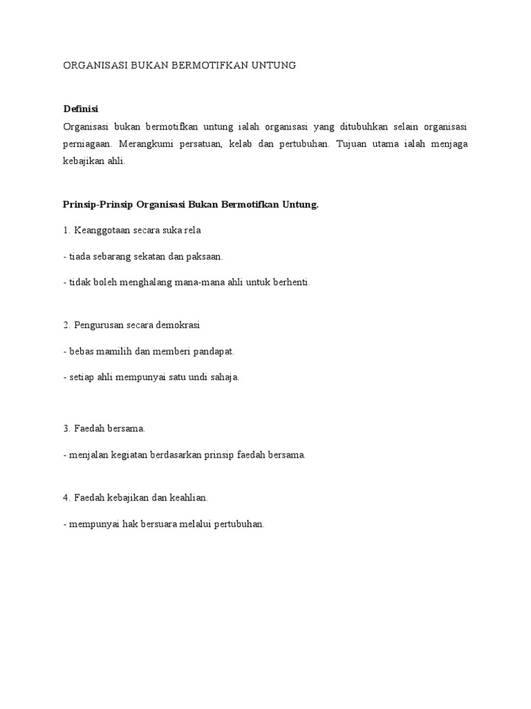 Contoh Organisasi Bukan Bermotifkan Untung