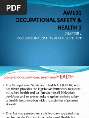 Occupational Safety And Health Osh Act 1994 Is A Chegg Com