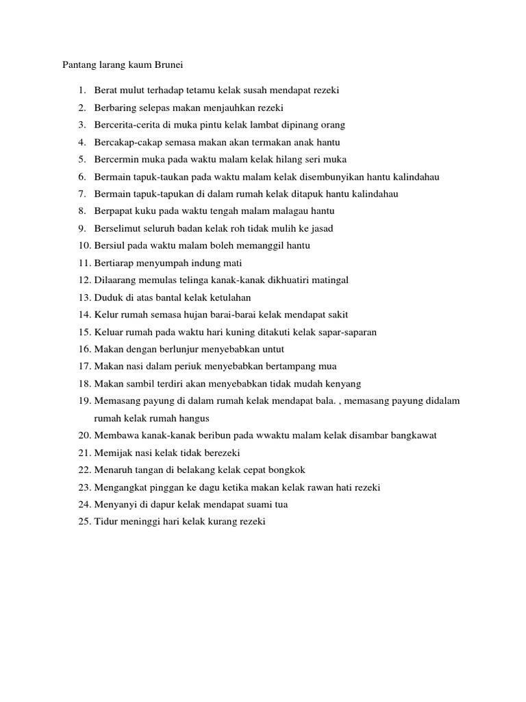 Pantang Larang Adat Resam Orang Melayu Pdf Document