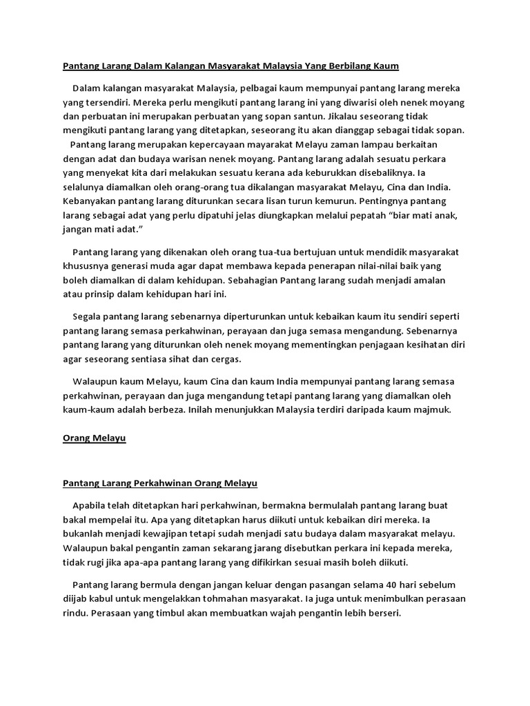 Pantang Larang Dalam Kalangan Masyarakat Malaysia Yang Berbilang Kaum