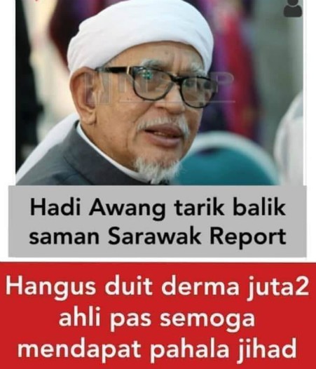 Pas saman sarawak report. Kes saman fitnah sarawak report didengar isnin pas yakin menang katanya ia berdasarkan bukti bukti yang telah dihantar oleh peguam parti itu ke mahkamah di sana. Kerana buat masa ini rencana sarawak report itu tidak dibuktikan sebagai suatu siaran fitnah terhadap pas katanya kepada sinar harian. Pas menyifatkan parti itu memperoleh kemenangan moral berhubung saman difailkan presidennya datuk seri abdul hadi awang terhadap editor sarawak report clare rewcastle brown di london.