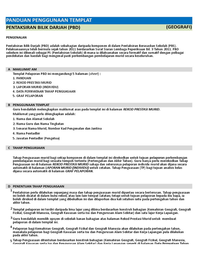 Panduan Penggunaan Templat Pentaksiran Bilik Darjah Pbd Geografi