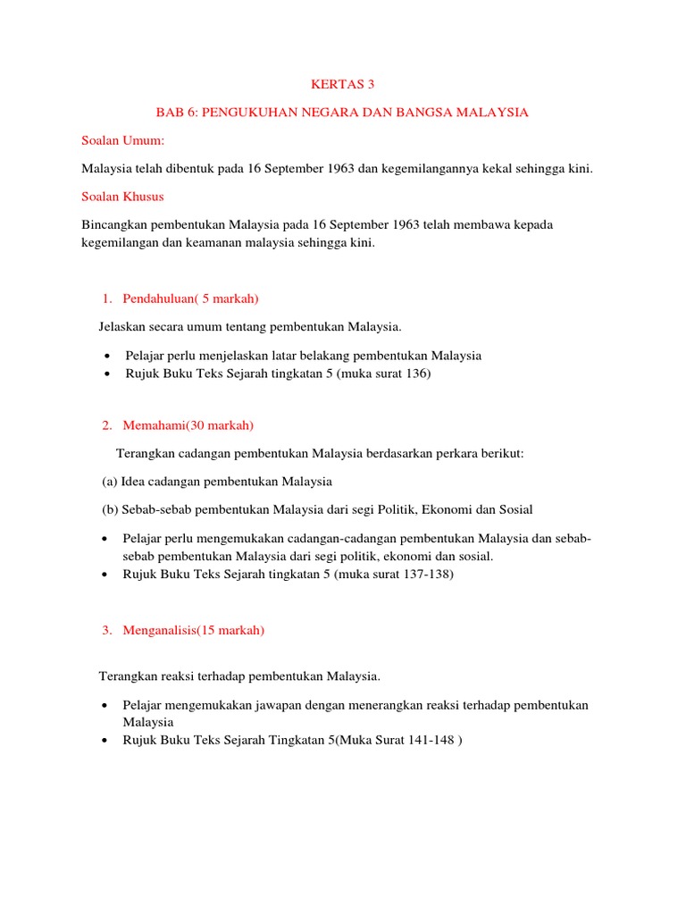 Cadangan Jawapan Kertas 3 Spm Sejarah Bab 6 Pengukuhan Negara Dan Bangsa Malaysia