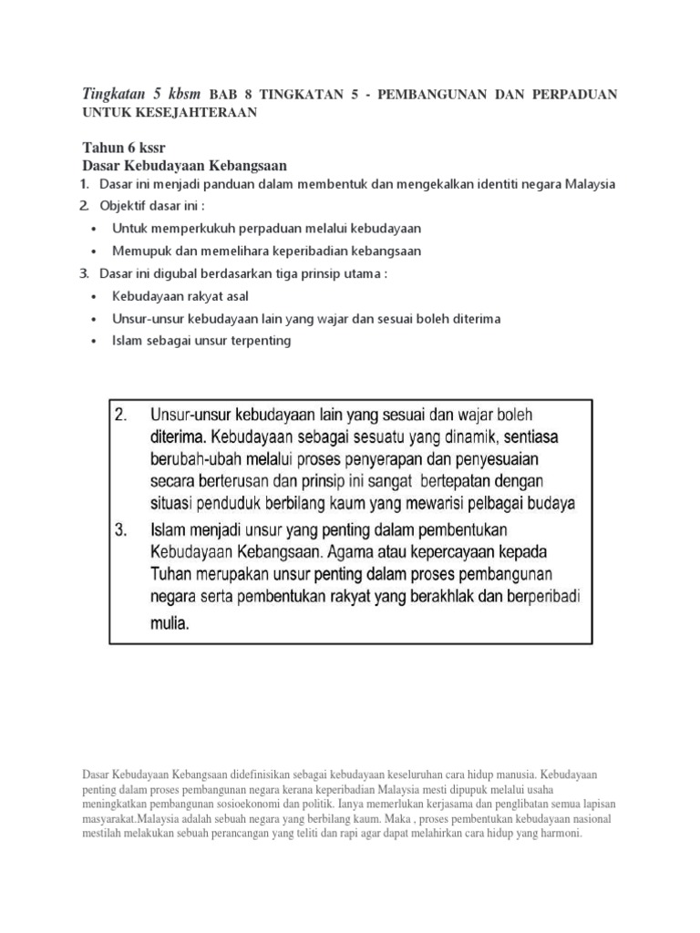 Tahun 6 Kssr Dasar Kebudayaan Kebangsaan Tingkatan 5 Kbsm