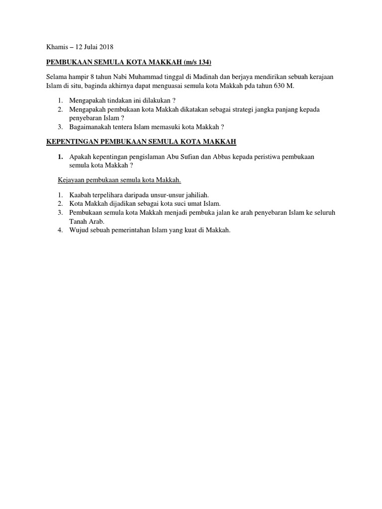 Pembukaan semula kota makkah. Nyatakan kepentingan pembukaan semula kota makkah. Soalan percubaan spm percubaan 2010 negeri sembilan.