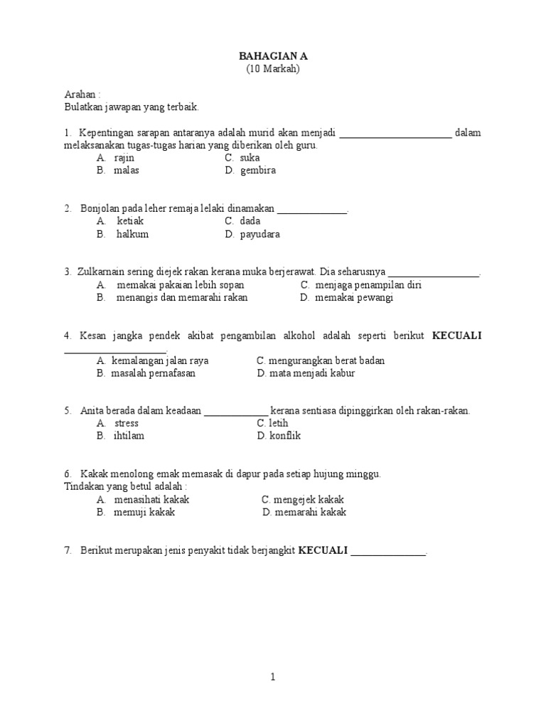 Soalan Latihan Pendidikan Kesihatan Tahun 4