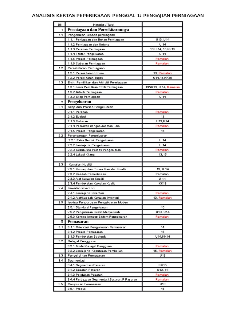 Analisis Kertas Peperiksaan Penggal 1 Pengajian Perniagaan Dan Topik Ramalan