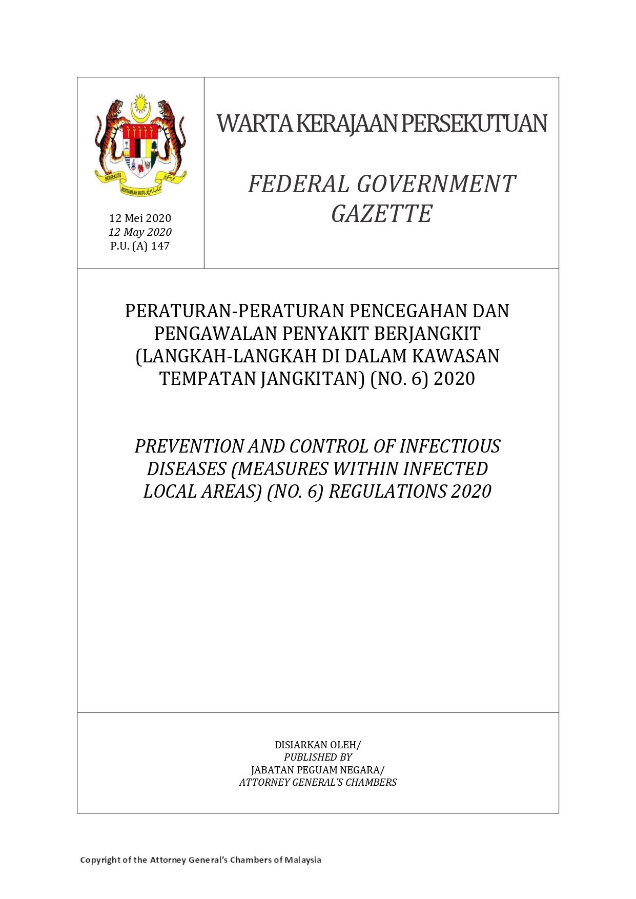 Bernama Tv On Twitter Federal Government Gazette Prevention And Control Of Infectious Diseases Measures Within Infected Local Areas No 6 Regulations 2020 1 3 Https T Co Ssljqlnrry