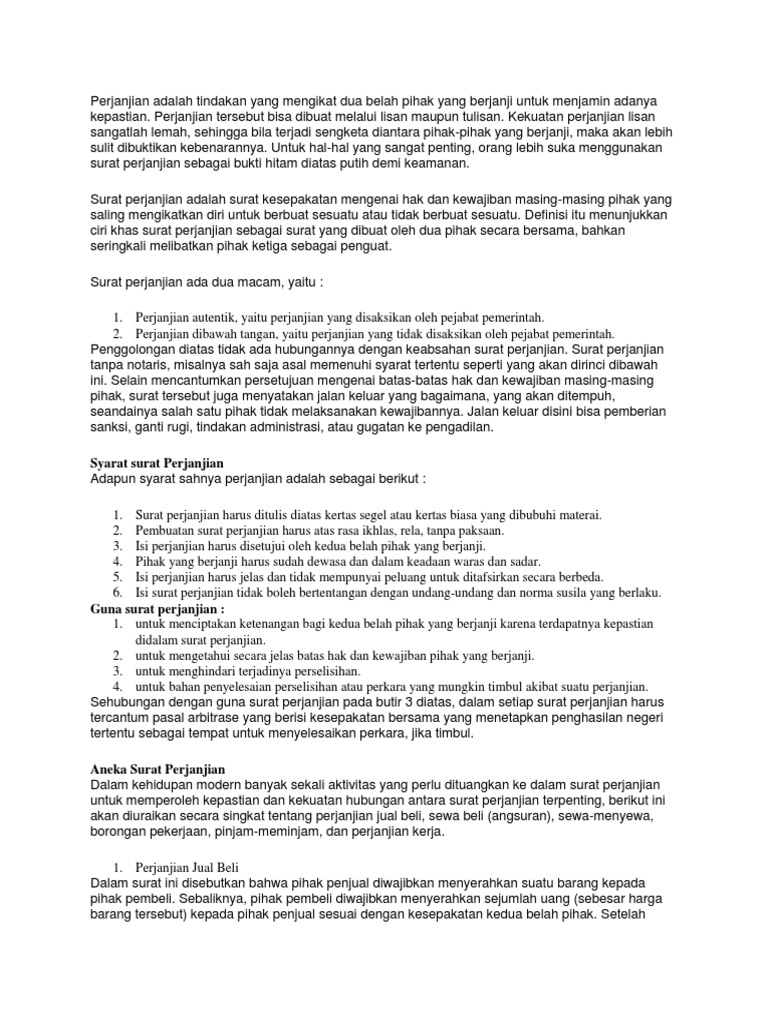 Syarat Surat Perjanjian