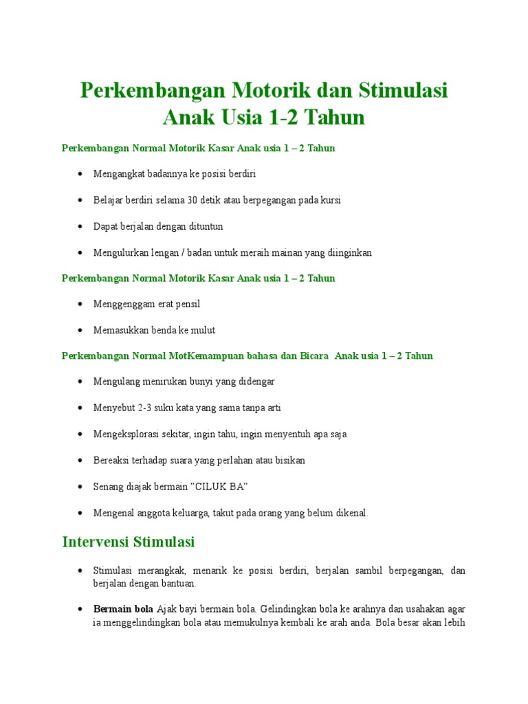 Perkembangan Motorik Dan Stimulasi Anak Usia 1