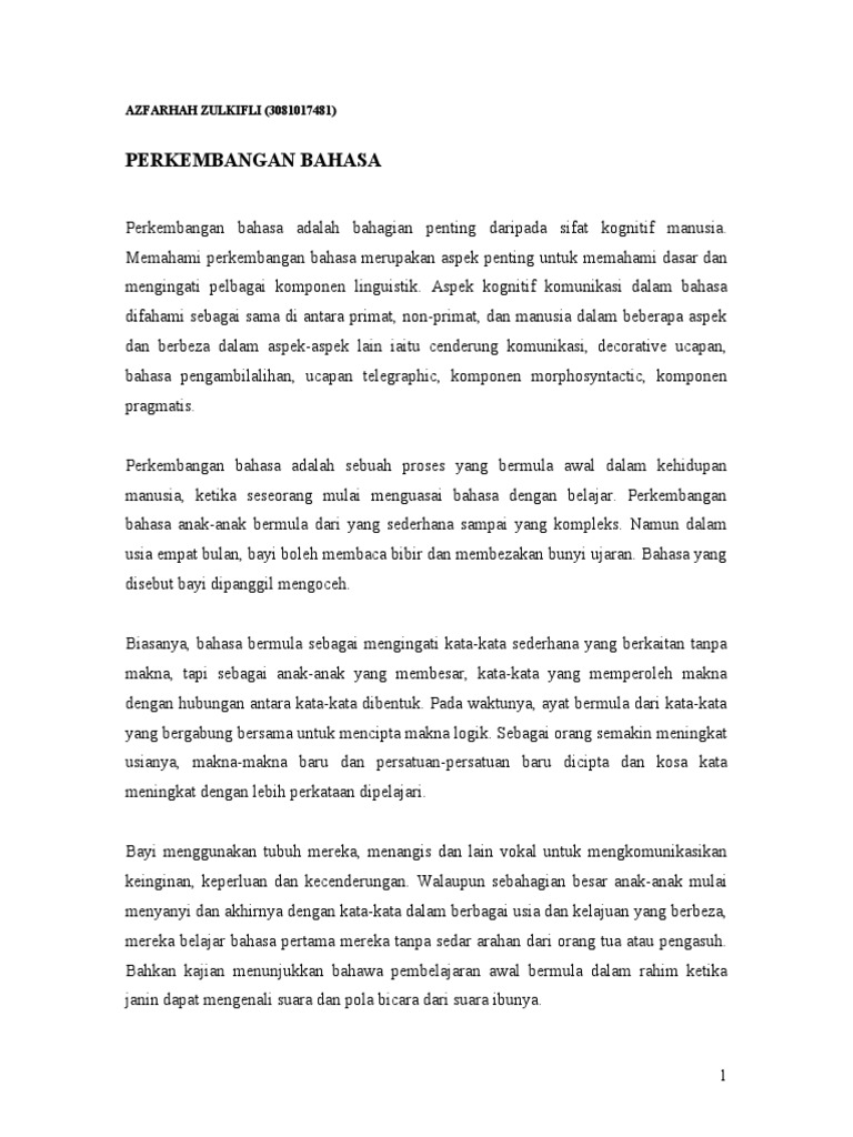 Doc Perkembangan Bahasa Kanak Kanak Zarif Azreen Academia Edu