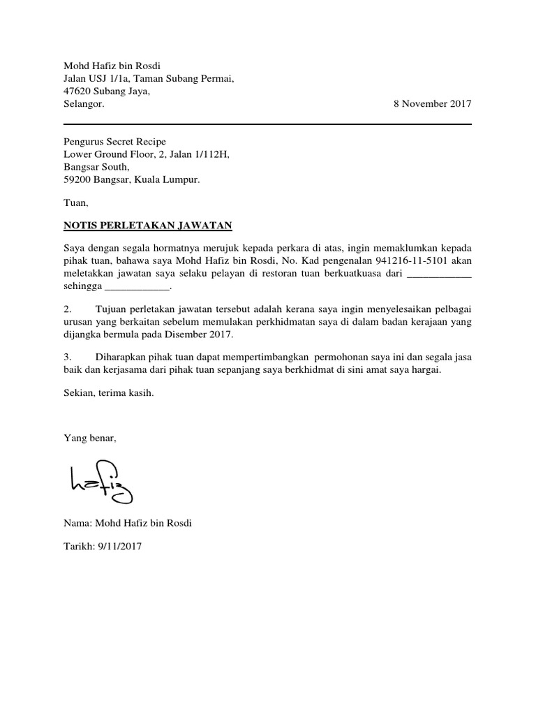Contoh Surat Berhenti Kerja 30 Hari Terkini Kerja Kosong Kerajaan