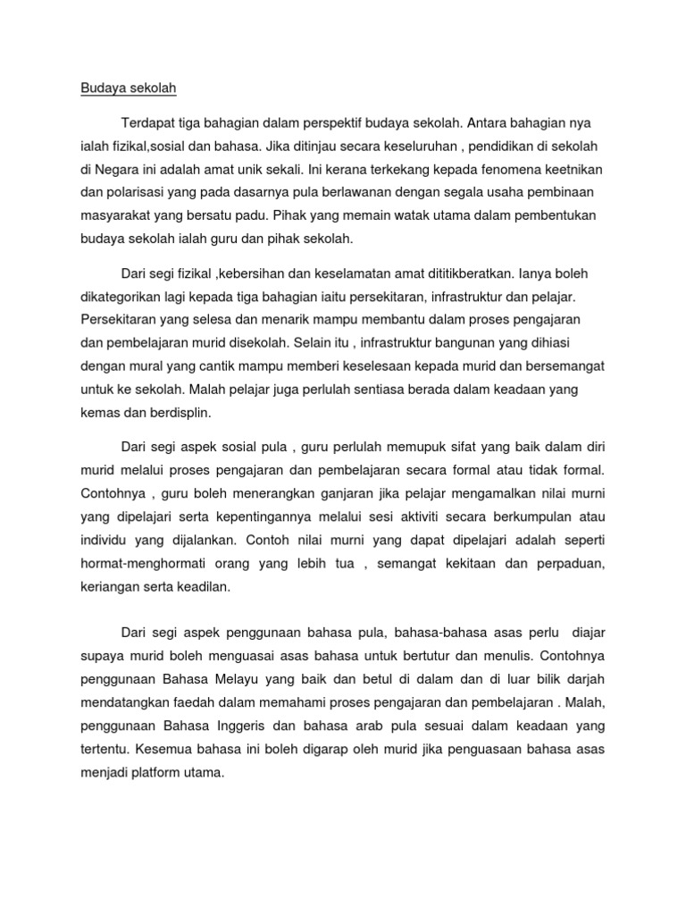 Persekitaran sekolah sering dikonsepkan sebagai konteks psikososial di mana guru guru bekerja dan mengajar fisher fraser 1991. Sekolah dan persekitaran hubungan saling menghormati antara guru dengan para pelajarnya kesukarelaan pelajar pelajar menerima aspirasi dan peraturan kelas yang diaturkan oleh pihak pentadbiran sekolah perasaan kekitaan yang timbul di antara para pelajar dan guru guru sebagai. Persekitaran dan budaya sekolah sekolah menengah kebangsaan datuk abdullah semenda menggunakan konsep sekolah dalam taman.