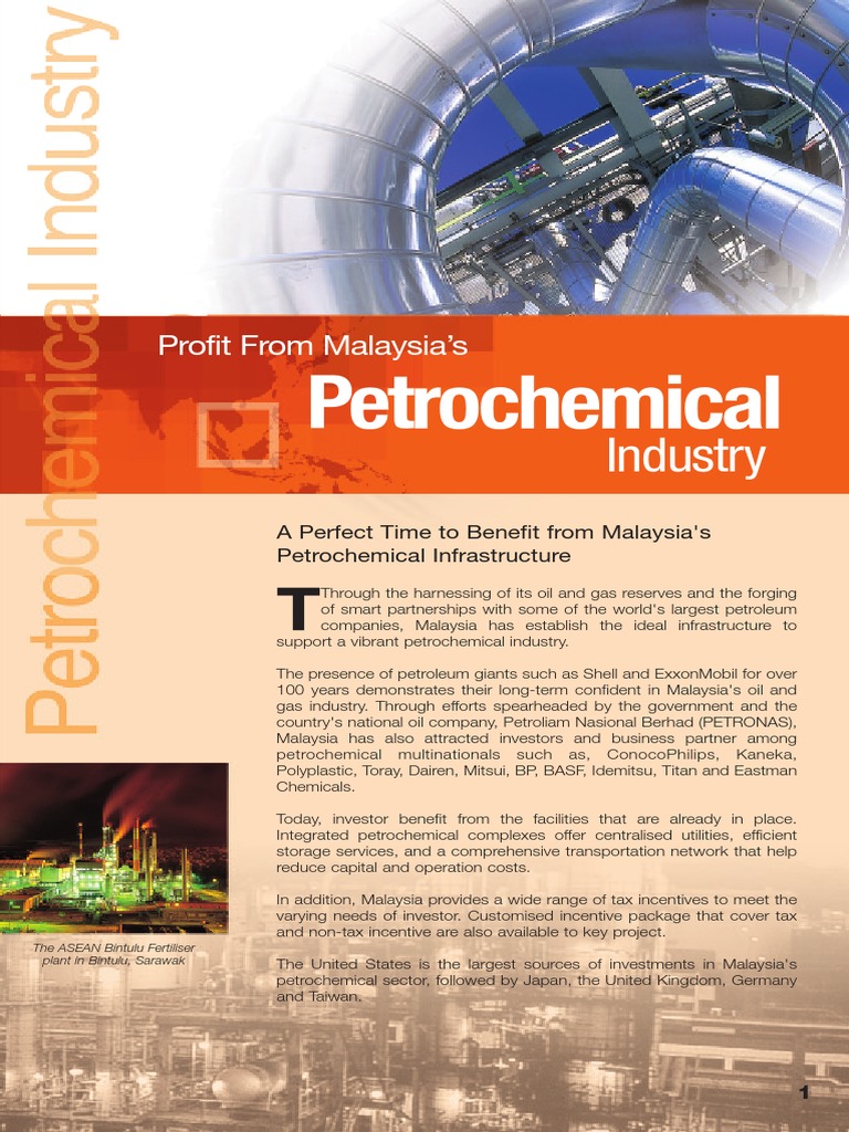 Petrochemical industry depend very much on its competitiveness vis à vis others in the region. Established in 1972 and being a pioneer in the malaysia the company had the honour to name herself with the name of the industry. Petrochemical industry in malaysia overview the petroleum and petrochemicals industry is one of the leading industries in malaysia.