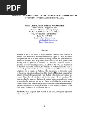 Pdf Protection Of Rights Of Adopted Children In Relation To Duties Of Adoptive Parents Under The Law In Malaysia