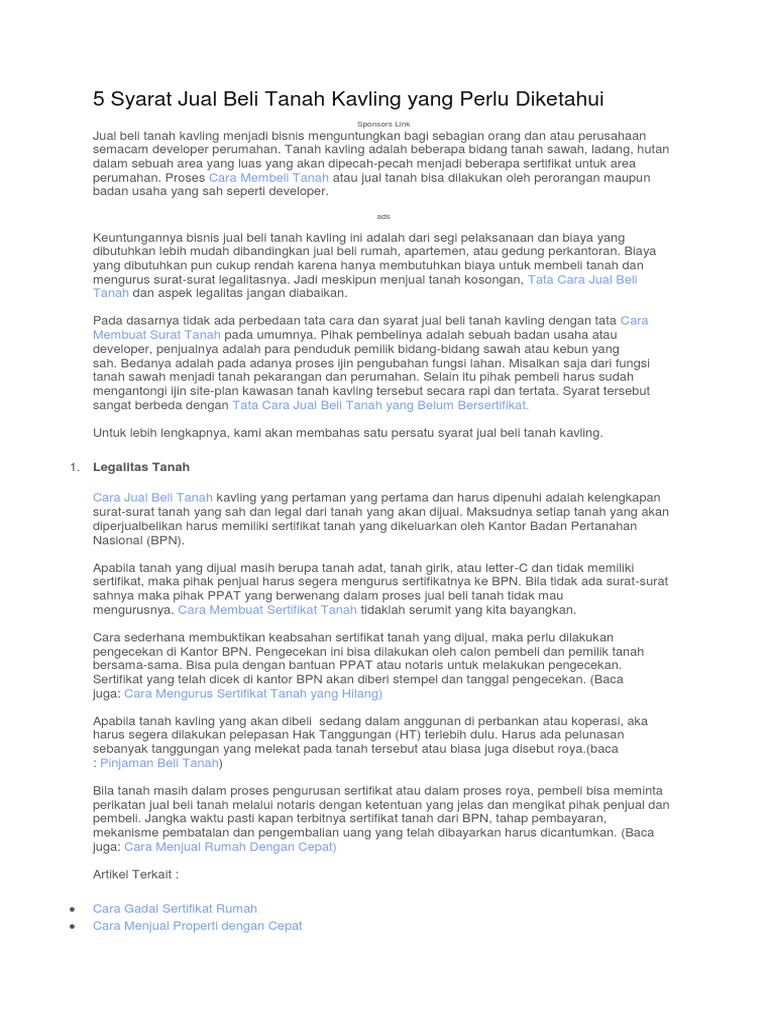 Prosedur Dan Cara Mengurus Surat Perjanjian Jual Beli Tanah Lengkap Abi Awam Bicara