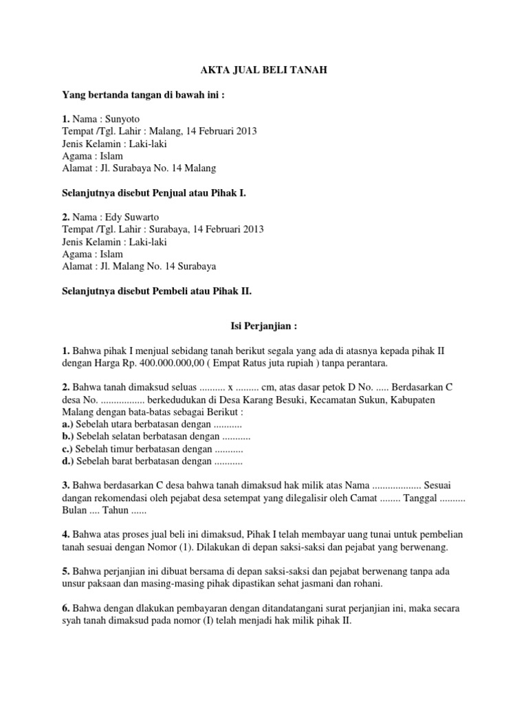 Cara Membuat Surat Perjanjian Jual Beli Tanah Lengkap Contoh Rumah Com