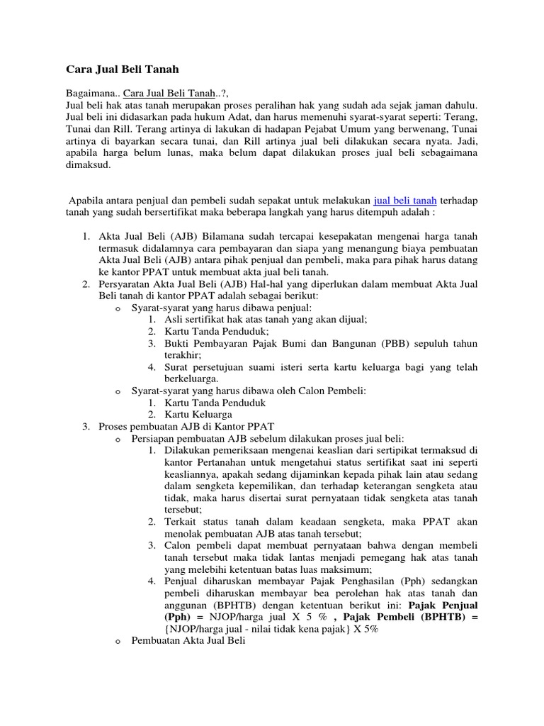 Jika harga jual beli tanah belum dibayar lunas maka pembuatan ajb belum dapat dilakukan. Proses jual beli rumah di malaysia 12 langkah lengkap sebagai perunding hartanah yang berdaftar selepas ini dipanggil sebagai ejen hartanah saya perlu menjelaskan secara terperinci kepada client penjual pembeli tentang proses jual beli rumah supaya kedua dua pihak jelas dan. Jual beli hak atas tanah merupakan proses peralihan hak yang sudah ada sejak jaman dahulu.