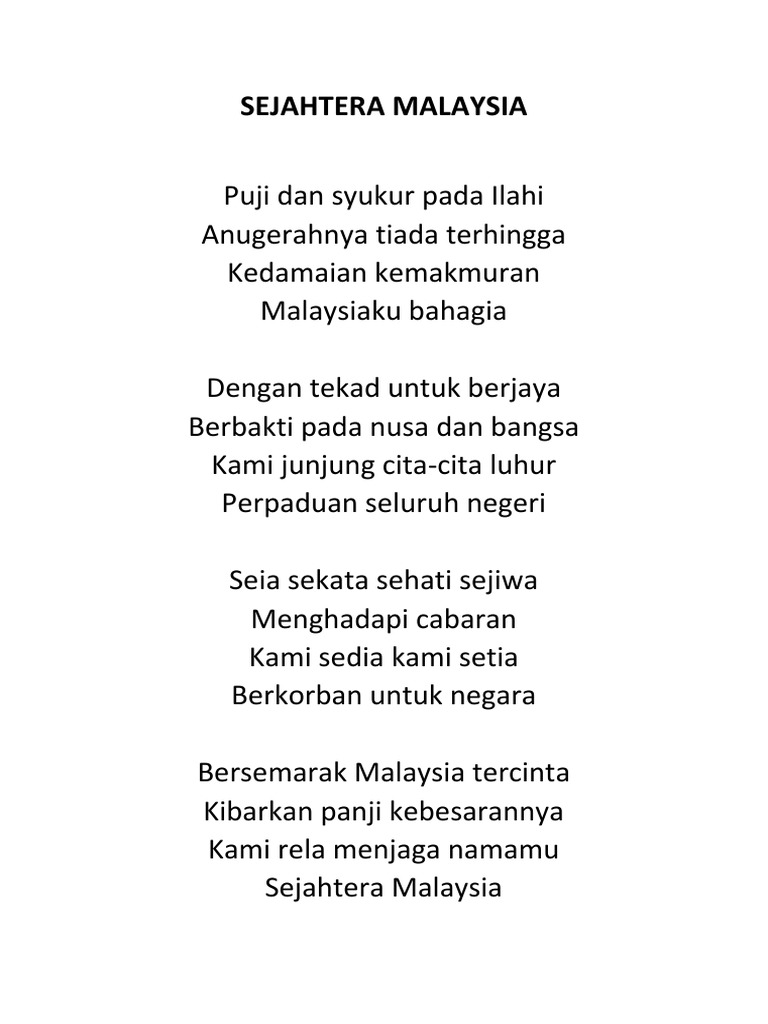 Puji dan syukur pada ilahi chord. Puji dan syukur pada ilahi anugerahnya tiada terhingga kedamaian kemakmuran malaysiaku bahagia dengan tekad untuk berjaya berbakti pada nusa dan bangsa kami junjung cita cita luhur perpaduan seluruh negeri korus seia sekata sehati sejiwa menghadapi cabaran kami sedia kami setia berkorban untuk negara. Intro c am f c verse c am f c puji dan syukur pada ilahi em am dm g anugerahnya tiada terhingga e am em am kedamaian kemakmuran f dm g malaysiaku bahagia verse 2 c am f c dengan tekad untuk berjaya em am dm g berbakti pada nusa dan bangsa e am em am kami junjung cita cita luhur f dm c perpaduan seluruh negeri chorus a dm g c seia sekata. Dengan tekad untuk berjaya berbakti pada nusa dan bangsa kami junjung cita cita luhur perpaduan seluruh negeri korus seia sekata sehati sejiwa menghadapi cabaran kami sedia kami setia berkorban untuk negara.