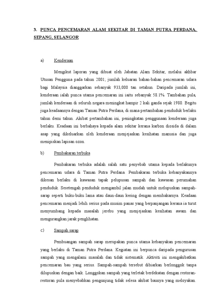 Doc Laporan Kajian Pencemaran Alam Sekitar Di Kawasan Perumahan Mizs Sakinah Academia Edu