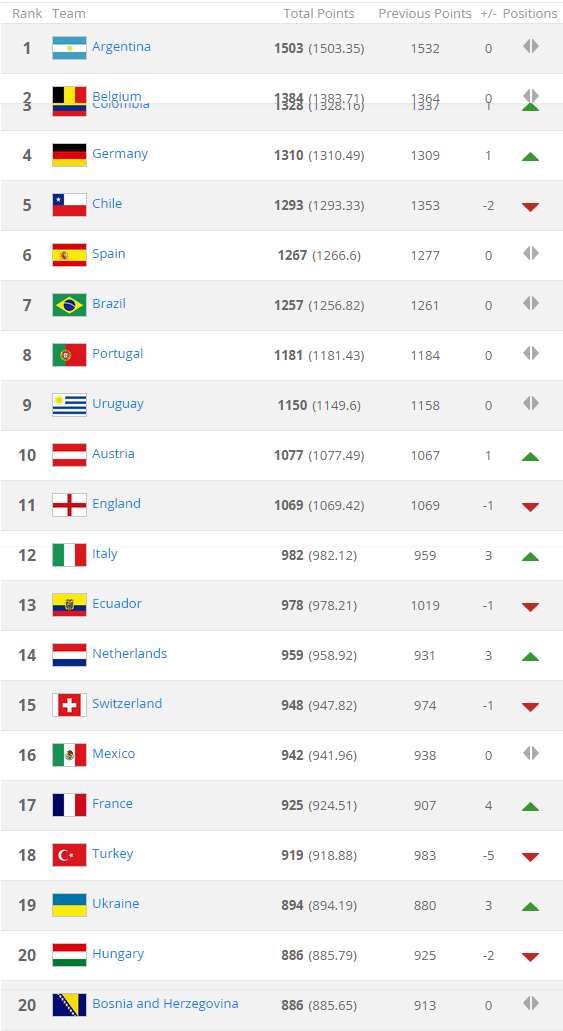 Peringkat dunia wanita fifa bertujuan untuk membandingkan kekuatan tim tim yang aktif di kancah internasional pada waktu tertentu. Wajar pastinya jika para pencinta sepak bola merasa kehilangan saat kompetisi harus dihentikan sementara waktu akibat pandemi virus corona seperti sekarang ini. Ranking fifa 2017 bola sepak dunia terkini.