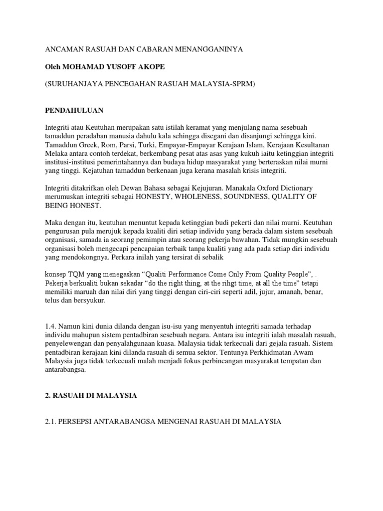 Rasuah Di Kalangan Penjawat Awam Pdf