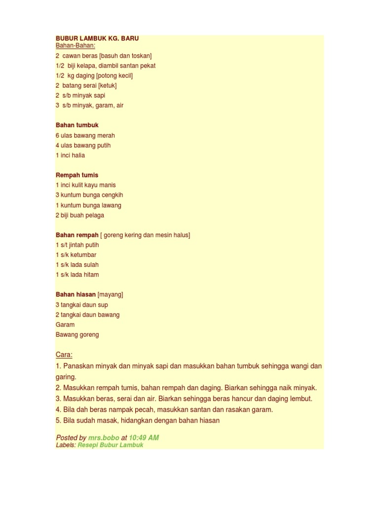 Resepi bubur lambuk kg baru. Bubur lambuk adalah antara makanan yang cukup sinonim dengan bulan ramadhan. Pembaca bolehlah mencuba resepi ini. Beriklan dengan kami nusantara.