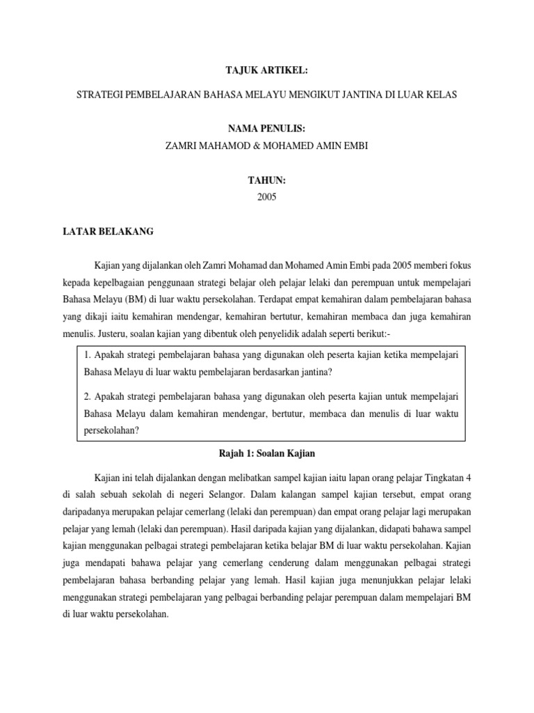 Bahasa melayu h1 8622 1 objektif peperiksaan peperiksaan bahasa melayu h1 gce peringkat lanjutan bertujuan untuk mengukur tahap pencapaian dan kecekapan calon dalam bidang bahasa berdasarkan objektif sukatan pelajaran bahasa melayu peringkat prauniversiti 2012 kementerian pendidikan. Google s free service instantly translates words phrases and web pages between english and over 100 other languages. Pendahuluan rujukan lengkap bagi artikel yang diulas ini ialah artikel tulisan mahzan arshad 2007 yang bertajuk memperkasa proses pengajaran dan pembelajaran bahasa malaysiadi sekolah dalam masalah pendidikan jilid 30 1 muka surat 79 87 universiti malaya kuala lumpur 2.