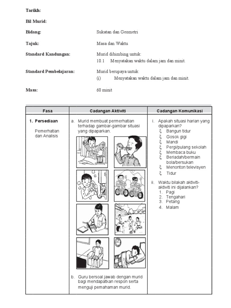 Rph Matematik Tahun 1 Sumber Pendidikan 5 Masa Dan Waktu