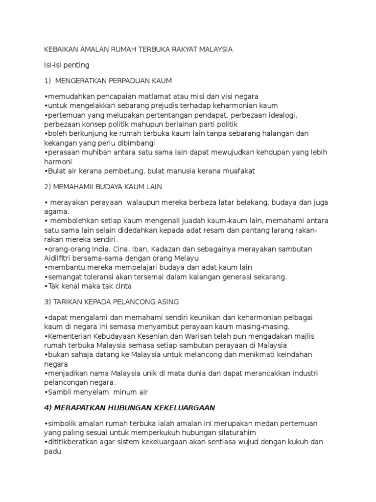 Rumah terbuka rakyat malaysia. Terima kasih cikgu penat saya mencari contoh karangan ini akhirnya jumpa jua. Sebagai rakyat malaysia kita sangat beruntung kerana tinggal di bumi malaysia iaitu setiap kaum di malaysia mempunyai budaya dan cara hidup yang unik. Pelbagai soalan yang boleh dijadikan tajuk dalam penulisan karangan yang berkaitan dengan kepelbagaian kaum bangsa dan agama.