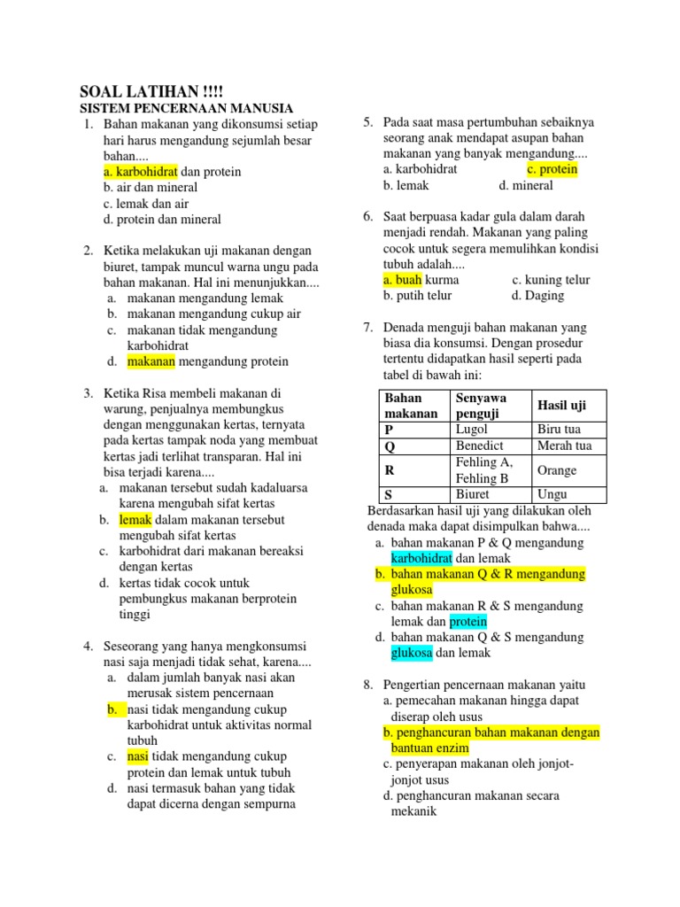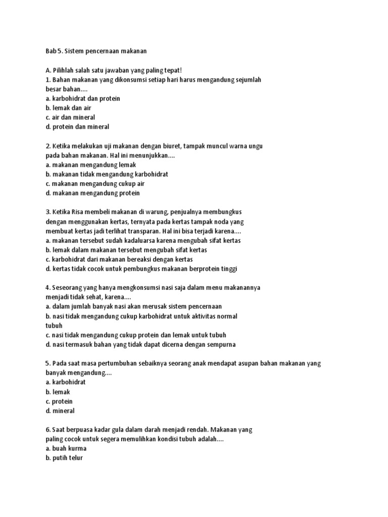 Soal Ipa Kelas 8 Pencernaan